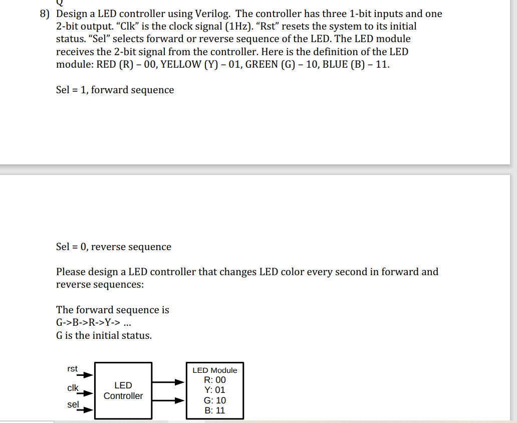 Solved 8) Design a LED controller using Verilog. The